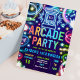Invitación Neon Glow Retro Arcade Fiesta de cumpleaños