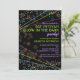 Las luces de neón y las vigas láser decoran esta divertida invitación a brillar en el fiesta oscuro/negro de la luz. Con texto de color verde lima brillante y morado neón, cada línea puede ser personalizada para su evento.