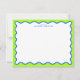 A bold and energetic note card featuring a vibrant neon-lime border paired with an electric-blue wavy frame. The striking color combination creates a fun, modern look that stands out instantly. With plenty of writing space and clean personalized typography, this card is perfect for playful thank-you notes, upbeat personal messages, or anyone who loves bright, expressive stationery. The neon palette adds a lively, youthful vibe that makes every note feel unforgettable.