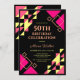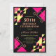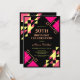 La elegante y elegante invitación de cumpleaños incluye un triángulo de neón rosa, melocotón y amarillo y un adorno de elementos geométricos rectangulares sobre un fondo negro. Usted puede fácilmente personalizar los detalles del fiesta incluyendo la edad para hacerlo aún más personalizado. Comparte la alegría con tus amigos y familia y haz que este cumpleaños sea un hito para recordar!