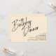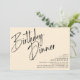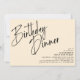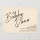 Invitaciones para cenas de estilo minimalista moderno con el título "Cena de cumpleaños" en un tipo de letra de guión de broche. Diseño fuera de centro con los detalles de su evento en la esquina inferior derecha. Texto negro sobre fondo color crema.