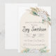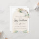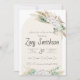 ¡Celebra a tu pequeño con esta invitación boho floral y de hierba de pampas para la fiesta! La hierba de pampas y un arreglo floral y de eucalipto ayudan a crear un aspecto rústico y sofisticado que es perfecto para la revelación del sexo, la fiesta de bebé o la despedida de soltera. El esquema de color neutro de beige, verde y blanco ayuda a hacer de esta una invitación ideal para fiestas y revelaciones de género neutro. La combinación de texto cursivo y tradicional une el aspecto para darle un toque único y vintage.