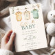 Invitación Neutral Watercolor Baby Clothesline Baby Shower