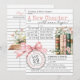Invitación New Chapter Library Card Book Bow Baby Girl Shower