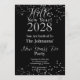 Invitación New Year's Eve Party Black and Silver Sparkle