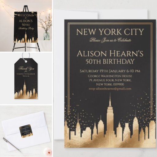 Invitación New York 90th Birthday Gold Black