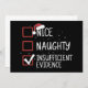 Invitación Nice Naughty Insufficient Evidence Christmas Funny