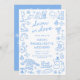 Celebra el amor y los nuevos inicios con nuestra encantadora invitación de fin de semana de bachillerato "Nieve en amor" con ilustraciones pintados a mano en azul pastel, con temática invernal.