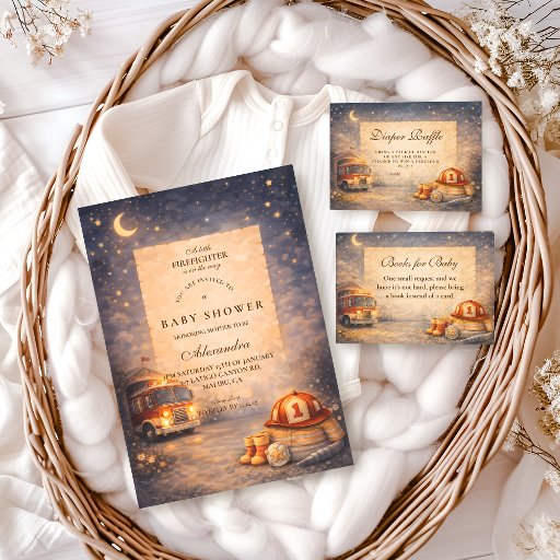 Invitación Night Sky Little Firefighter Baby Shower