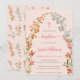 Invitación Niña Acuarela Floral Rosa Bautizo Flores Silvestre