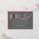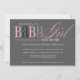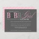 Invitación a la ducha para bebés con las palabras "niña" en rosa, gris y negro con detalles de fiesta a continuación.