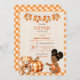 Invitación Niña bebé otoño cuadros oso de peluche calabaza ho