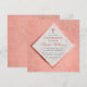 El texto está en un marco cuadrado de (falso metálico) oro rosa y tiene una cruz de oro rosa encima. El nombre y la palabra "Confirmación" están coloreados en un color marrón rosado similar al oro rosa. El nombre está escrito en una elegante escritura caligráfica, el resto en mayúsculas. El fondo (y la parte posterior) es oro rosa con purpurina, el interior del marco es mármol blanco.