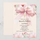 Invitación Niña de bautizo con flores de crema y lazo rosa