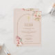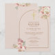 Hermosas acuarelas de flores de hierba de pampas y un arco dorado elegante enmarcan los detalles de tu bautizo o presentación en tipografía moderna sobre un fondo rosa claro. Diseñado por Thisisnotme