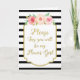 ¿Serás mi tarjeta de invitación de niña de las flores en patrón clásico de rayas blancas y negras con detalles dorados vintage, flores de acuarela rosadas y durazno y texto con estilo de letra a mano, disponible en una amplia gama de productos de boda y para el resto de tu cortejo nupcial.