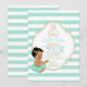 Invitación Niña Princesa Mint Tutu Stripes Purpurina de oro