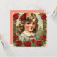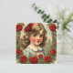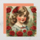Este diseño de tarjeta de invitación cuadrada presenta a una encantadora niñita en un marco de rosas rojas. Fantástico para San Valentín - día , para su fiesta de retiro y ducha de novia. El lado inverso viene en un rosa sólido. Puedes personalizar ahora con tus propias palabras . Contenido generativo de Alma Wad y Canva AI .
