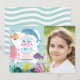Niñas Bajo El Mar Delfín De Pulpo 4 invitación. Agregue cualquier edad. Incluye impresión trasera.