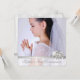 Elegante invitación de plata y blanca para niñas foto primera comunión. Esta hermosa invitación de foto blanca para primera comunión se personaliza fácilmente para su evento agregando su foto y detalles del evento, estilo de fuente, tamaño y color de la fuente, y redacción.