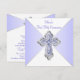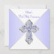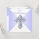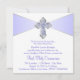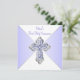 Invitación de Primera Comunión morada y plateada para niñas con una elegante cruz de diamante morada y plateada sobre un hermoso fondo morado y blanco. Puede personalizar fácilmente esta bonita invitación de Primera Comunión morada añadiendo los detalles de su evento en el tamaño y color de fuente, y la redacción de su elección. También puede cambiar el color de fondo.