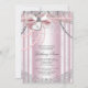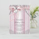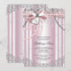 Invitaciones de primera comunión de niñas rosadas y grises con hermosas perlas lazo de encaje y cruz de corazón. Puede personalizar fácilmente esta hermosa invitación de primera comunión rosa y plateada para su evento agregando sus detalles en el estilo de fuente y color, y redacción de su elección. Este es un diseño impreso sin joyas reales, perlas, purpurina, etc.