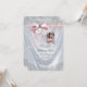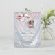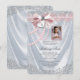 Invitación de primera comunión con foto rosa con elegante satén blanco y perlas bonitas y lazo rosa con cruz y corazón, y hermoso marco de foto rosa para tu foto. Esta hermosa invitación de primera comunión blanca se personaliza fácilmente para tu evento simplemente agregando tu foto y detalles del evento en el estilo de fuente y color y redacción de tu elección. Puedes recortar tu foto y mover el marco a donde lo necesites, así como hacerlo más pequeño o más grande. Este es un diseño impreso sin cintas, lazos, perlas, purpurina, etc. reales.