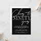 Celebrate in style with this modern elegant Ninetieth Birthday Party Invitation, perfect for marking a milestone in a chic, timeless way. The design features a large “NINETY” in light gray serif font at the top, with white script fonts above and below reading “Cheers To Ninety Years!” for a stylish, celebratory look.