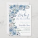 ¡Bienvenidos a su pequeña con este elegante Niño Bebé en Bloom Invitación Baby Shower! Con un impresionante arreglo de flores azules de primavera y delicada vegetación, este diseño prepara el escenario para una celebración elegante e inspirada en la naturaleza. Esta invitación es ideal para una celebración atemporal y hermosa, perfecta para honrar a una futura madre y a su bebé florido. BBS603