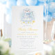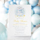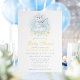 Invite a amigos y familiares a una celebración de baby shower soñada con esta encantadora invitación de acuarela. Con un adorable oso sentado en nubes, pescando estrellas, y en tonos suaves de azul y amarillo, este diseño es perfecto para el baby shower de un niño. Los colores suaves y la ilustración caprichosa crean una atmósfera serena y celestial ideal para padres que aman la naturaleza y las noches tranquilas. Esta invitación seguramente establecerá un tono mágico para tu baby shower, dejando a los invitados emocionados por la llegada del pequeño.