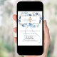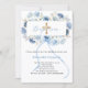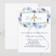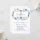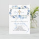 Un elegante fondo blanco, decorado con flores azules pintadas a la acuarela, un lazo azul y una cruz dorada. Personalice y agregue un nombre y detalles.