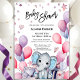 Invitación Niño elefante azul globo azul lindo Baby Shower