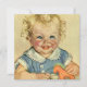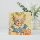 Invitación de la fiesta de Baby Shower. Niños de ilustracion y bebés de época con una imagen de un bebé escandinavo con la cabeza de hermosos rubios rubios sosteniendo un juguete, un caballo de dala sueco. ¡Sonriendo, riendo y divirtiéndose!