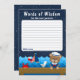Esta tarjeta de sabiduría, bonita y divertida, incluye a un marinero con oso en una cubierta de madera con gaviota y cangrejo. En el fondo, un bonito pájaro rosa se encuentra en una velera, con olas del océano y un cielo estrellado azul marino. El texto combina fuentes audaces y serif para un estilo elegante y moderno. Es ideal para una ducha de natación con temática náutica.