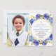 Invitación Niño Primero Santa Comunión Azul amarillo floral