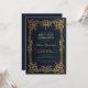 Esta elegante y azul primera invitación a la comunión sagrada con aire vintage, apropiada para un niño, tiene un marco dorado vintage de hojas y viñas de oro (y unas cuantas bayas de oro) en un fondo azul marino. Hay una cruz de oro en la parte superior del marco, encima del texto, con una corona de oro detrás. El nombre del niño se escribe en un guión caligráfico elegante. Todo el texto puede ser personalizado y tiene un color dorado similar a las decoraciones doradas del marco. El marco de las hojas de oro vintage es de una portada del libro del siglo XIX, para el libro "The Home Book of the Picturesque" publicado en 1852, ahora de dominio público.