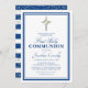 Invitación Niño religioso Plata Azul Primera Santa Comunión