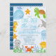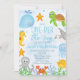 Invitación de primer cumpleaños de Boys Under the Sea One-der a un bebé con criaturas o criaturas del mar y algas. La invitación de cumpleaños de este niño por debajo del mar es ideal para una fiesta de cumpleaños con temática marina y podría ser usada para cualquier edad.