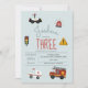 Esta tierna invitación de cumpleaños para niños de color azul incluye un camión de bomberos, un coche de policía y un personalizado de ambulancias, con un patrón de vehículos de emergencia azul al revés, y puede ser personalizado con los detalles necesarios para el fiesta de su hijo. Las invitaciones perfectas para el evento de cumpleaños de su bebé.
