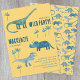 ¡Es hora de una fiesta de cumpleaños salvaje! Un divertido grupo de adorables dinosaurios en un fondo amarillo, listos para el personalizar con el nombre, edad y detalles de fiestas de su hijo. Genial para cualquier niño, niño o chica de edad. La parte posterior presenta un patrón de dinosaurios similar. Arte original de Nic Squirrell.