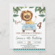 Gracioso Boys Roar León Corona Rey 4to cumpleaños Invitación Cute y chistoso niñito es nuestra pequeña invitación de cuarto cumpleaños temática de león rey con un ruidoso león, corona, auto azul y follaje de selva tropical. Este es nuestro pequeño rey que está cumpliendo 4 años de invitación también presenta un patrón tribal.