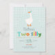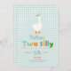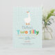 ¡Celebra el segundo cumpleaños de tu pequeña con esta divertida invitación de granja! Con un juguetón de dos tontos gansos usando un gorra fiesta azul y una tipografía colorida y amigable con los niños, es completamente personalizable con el nombre, edad y detalles fiestas de su hijo. La parte trasera muestra un patrón de gingham azul a juego, lo que la convierte en la invitación perfecta de cumpleaños de los chicos para un corral de ganado o un fiesta de temática animal.