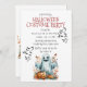 Invitación de la fiesta de disfraces de Halloween para niños. El diseño incluye fantasmas, calabazas y murciélagos. Artículos de fiesta de Halloween coincidentes en nuestra tienda. Personaliza tus datos.