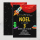 Invitación de cumpleaños para niños negros alienígenas modernos Este diseño de invitación de cumpleaños para niños con temática espacial es lindo y moderno y presenta un diseño de personalizado negro alienígena, con un cohete, OVNI, alienígena, planeta, astronauta y estrellas. La invitación puede ser personalizada con el nombre de su hijo y otros detalles necesarios para su fiesta. La combinación perfecta de temática espacial con la fiesta de cumpleaños de su hijo. Esta invitación está configurada para un tercer cumpleaños, pero es fácil de editar bajo 'personalizar esta plantilla' para otro cumpleaños!