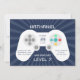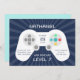Las invitaciones a fiestas de cumpleaños de temática de jugador de Guay incluyen un controlador de videojuegos con "[name] ha alcanzado el nivel [age]" mostrado en letras retro, con los detalles de su fiesta en el controlador de juego.