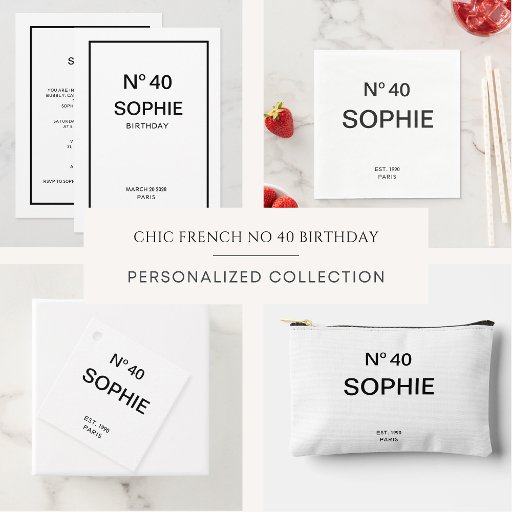 Celebrate her milestone in timeless Parisian style with the No. 40 French Chic 40h Birthday Party Invitation, a sophisticated design inspired by classic French elegance and modern femininity. Featuring refined typography, and a stylish “No. 40” statement as the centerpiece, this invitation captures the charm of a Paris soirée with a soft, romantic aesthetic. Perfect for a glamorous 30th birthday celebration, it sets the tone for an unforgettable evening of fashion, friends, and fête-inspired fun. Printed on premium-quality cardstock with a beautifully balanced layout, this invitation is ideal for the birthday girl who loves chic details, effortless luxury, and a touch of French flair.