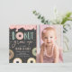 (H) Una hermosa y dulce invitación de cumpleaños para un chica (primer) cumpleaños. Los colores rústicos pastel de la pizarra combinan con cualquier estilo fiesta, con donuts dulces y confeti de colores. Diseñado para coincidir con nuestra colección de temas Donut.