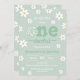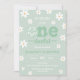 La invitación a un chica distinguido para el primer año de cumpleaños incluye un sabio texto tipográfico en negrita "maravilloso" en el medio y rodeado de flores retro groovy.