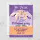 Nada De Trucos Sólo Trata La Invitación De Halloween De Spooky Castle. Castillo espeluznante en la colina. El diseño es de color violeta y naranja. Haz una invitación para una fiesta de Halloween.