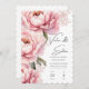 Invitación floral con tonos de rosa y aliento de bebé rosa.